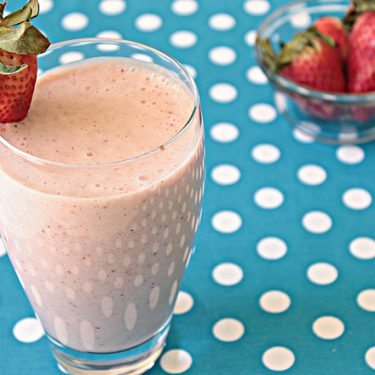 I have been drinking A LOT of smoothies lately! Usually Ill go forever without them and then get on a huge kick! They’re so easy and simple! Throw a bunch of fruits or veggies in a blender, add some liquid, and voila! A snack in a glass! Or in the case of this fab Strawberry Banana Oatmeal Smoothie…a MEAL in…