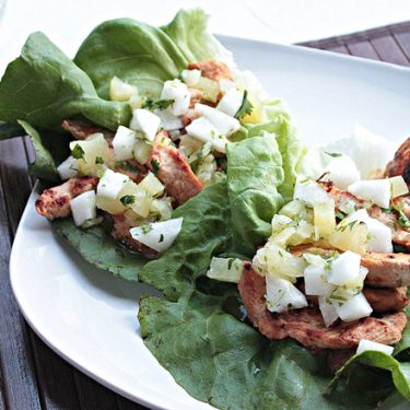 Thai Chicken Lettuce Wraps with Pineapple Jicama Slaw