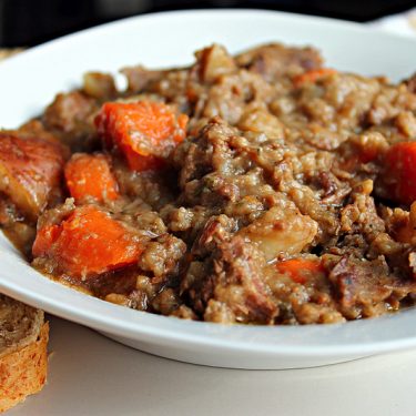 Beef stew is the ultimate comfort food. It reminds me of something I would eat after a long day of skiing, sitting by the fire, warming up. On this particular instance, I had been sick as a dog all weekend, and continued with the worst cold all week…soup is what I’ve been all about. I looooved this beef stew! (Even…